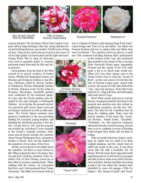 All this, and we haven’t even talked about the camellias. but there is more history to tell. When making the trip to Picayune, Harriet and Keric Buckner, members of the Camellia Club of New Orleans, joined me as they often do on these camellia hunts. While chatting with the owners, we commented that Keric and I both graduated from Tulane University. “My father was Norman Hall; he was co-Captain of Tulane’s only winning Sugar Bowl team”, Lynne Burger said. Keric lit up and added, “my father was Norman Buckner and was co-captain with your father, they were best friends.” The camellia world can often be a small one. Talk continued including Norman Hall’s participation in the creation of the “rag”; the ceremonial