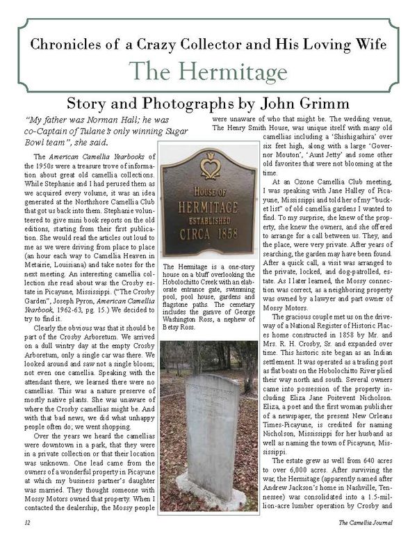 The American Camellia Yearbooks of the 1950s were a treasure trove of information about great old camellia collections. While Stephanie and I had perused them as we acquired every volume, it was an idea generated at the Northshore Camellia Club that got us back into them. Stephanie volunteered to give mini book reports on the old editions, starting from their first publication. She would read the articles out loud to me as we were driving from place to place (an hour each way to Camellia Heaven in Metairie, Louisiana) and take notes for the next meeting. An interesting camellia collection she read about was the Crosby estate in Picayune, Mississippi. (“The Crosby Garden”, Joseph Pyron, American Camellia Yearbook, 1962-63, pg. 15.) We decided to try to find it.